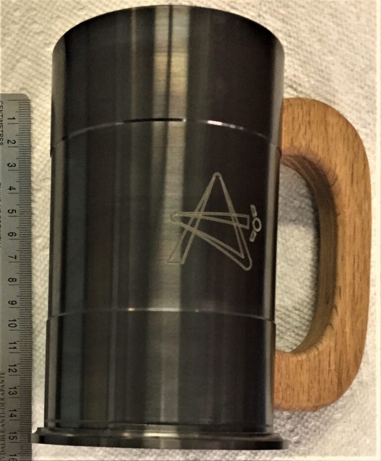 ![]() | Autographed depiction of MP tandem accelerator given John McKay as departure gift. | accelerator; retirement memento | 1996 | 2022-020 | A 25 cm long, aluminum, depiction of the Chalk River MP tandem accelerator where John McKay worked for many years. The artifact was given to John at the end of his tenure in the Tandem Operations branch in 1996 and was intended to be used as a pencil holder. The diameter at the center is 5 cm and the artifact bears the signatures of thirty-nine of John’s co-workers. The dedication reads ”John McKay, TASCC, 1989-1996”. |