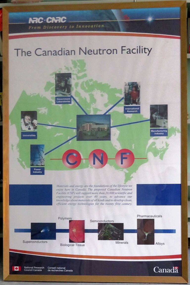 ![]() | Framed panel describing the NRC programs based at NRU at CRNL | nru reactor, photograph | late 1990s | 2018-093 | A large (97 cm by 114 cm) framed poster describing the various NRC programs carried out at the NRU facilities at CRNL. Activities include magnetism and superconductivity, biomaterials, materials science and engineering, structures and dynamics, and surfaces and interfaces. |
